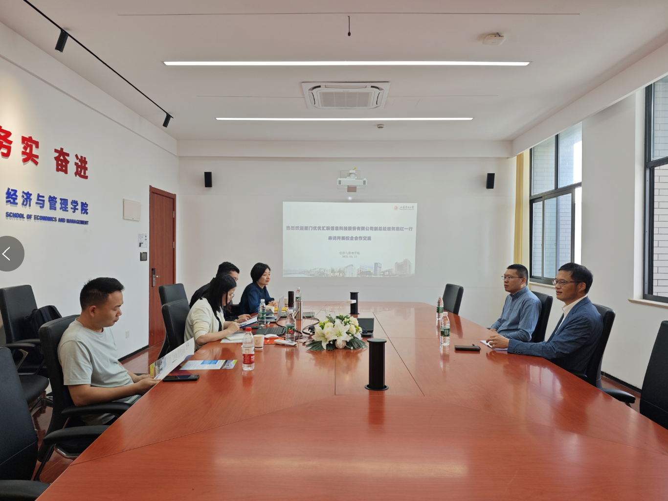 5月13日,厦门优优汇联信息科技股份有限公司副总经理何燕红一行到学院洽谈人才培养、学生实习就业合作等有关事宜,学院党委副书记、常务副院长潘华、学院院务秘书杨迎春参加了交流。