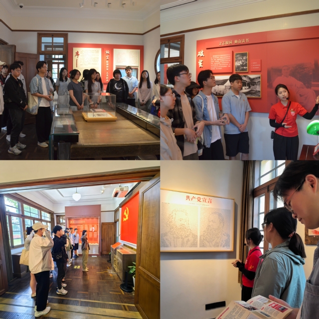 首站为陈望道故居参观学习。陈望道先生作为《共产党宣言》首个中文全译本的翻译者,用“真理的味道非常甜”的坚定信仰,为中国革命传播了马克思主义的火种。走进故居,译稿手迹、木桌与煤油灯将人带回百年前那个春夜。讲解员讲述了陈望道先生隐居柴房、误把墨汁当红糖的故事,在场师生无不为其执着与信仰所感动。展柜中一封书信写道:“若能为中国寻一条光明之路,虽九死其犹未悔。”言辞铿锵,彰显初心。参观结束后,全体党员在故居内重温入党誓词,誓言铿锵回荡,信念更加坚定。