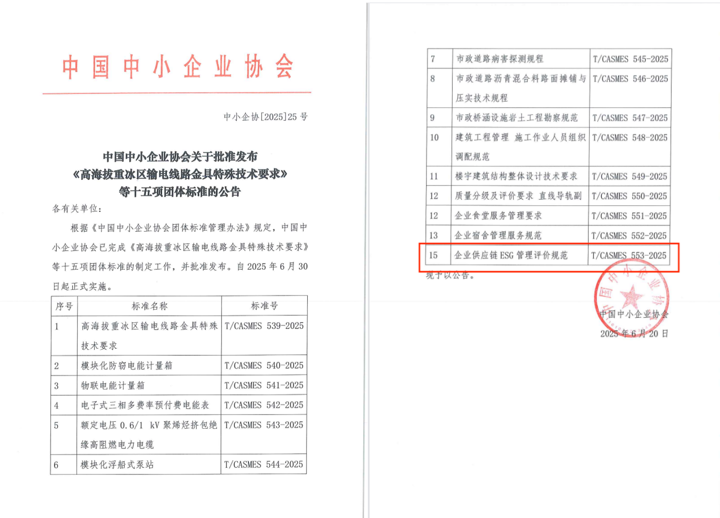 2025年6月20日,《企业供应链ESG管理评价规范》(以下简称《规范》)正式颁布。《规范》由中国建材检验认证集团苏州有限公司、北京国发绿色节能环保技术研究院提出,中国中小企业协会归口,我院教师汪洋、潘仙友、高闪闪作为主要起草人参与了《规范》的编制。