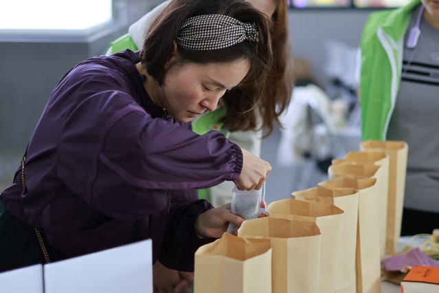 中药文化体验区里,志愿者化身“健康科普员”,向参与者讲解中药香囊的历史故事与药材功效,详细介绍艾叶、薄荷等常见药材的特性。在志愿者的帮助下,大家根据自身需求挑选药材,亲手制作专属“养生香囊”。从药材搭配到香囊缝制,每一个步骤都凝聚着参与者的用心,药香袅袅间,传统养生文化深入人心。