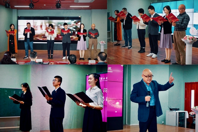 在“师者·记忆”环节中,学生们以诗朗诵《薪火相传》深情致意,向在座教师们致以最崇高的敬意、传递最美好的祝福;教师们以诗朗诵《世纪曙光》慷慨回应,用铿锵之声诠释育人信仰;接着,学院教师王森波携绝活《玲珑塔》惊艳登场,以贯口技艺征服全场,将气氛烘托至高潮。