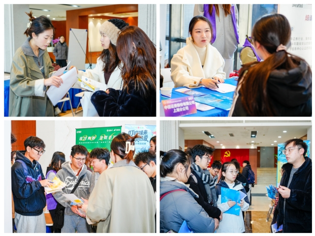 为促进毕业生更加充分和更高质量就业,精准搭建校企对接桥梁,经管学院携手文科学部于2025年11月19日在临港校区学术楼一楼大厅成功举办了2025年秋季学期经管、外语类就业实习招聘会。现场学子接踵而至,交流融洽有序。