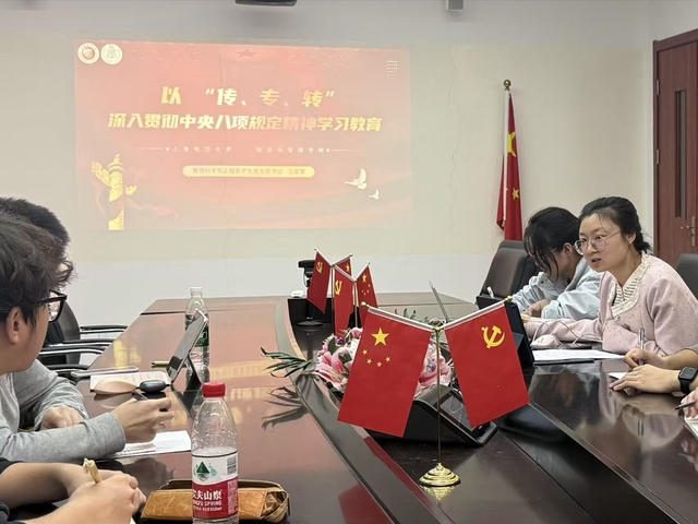 党支部书记王卲萱围绕“‘传、专、转’中央八项规定精神”,系统梳理全面从严治党十年成效,强调发展对象须以规矩意识筑牢思想防线,从小事践行党的先进性与纯洁性。党支部书记高欣月则以习近平总书记和黄文秀的真实案例为切入点,细致解读“自找苦吃”的攻坚内核,引发同学们深思。