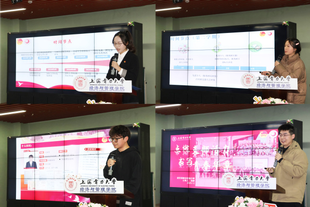 头雁领航分享会上,四位团学骨干作“头雁领航”主题发言:团务部负责人蔡淑婷剖析四大核心团务,呼吁团支书以责任心推动工作规范化;组织部联合负责人张宇婷梳理支部工作关键节点与流程,强化基层组织效能;2023181班班长何蒙恩分享三年班级建设经验及“十佳班长”心得;2022401班团支书吴薛结合创新案例,强调提升支部凝聚力与实践效能。