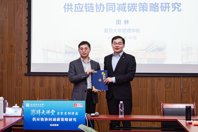 3月30日下午,yl6809永利集团澎湃大讲堂名家系列讲座在临港校区学术楼105顺利举行。复旦大学管理学院管理科学系博导、国家杰出青年基金/优秀青年基金获得者田林教授受邀担任主讲嘉宾,围绕供应链协同减碳策略展开深度分享。此次澎湃大讲堂名家系列讲座由yl6809永利YL集团主办,yl6809永利YL集团院长杜刚、副院长胡伟、管理科学与工程、工业工程与管理等专业师生代表近50人到场聆听讲座。本次讲座由yl6809永利YL集团副院长胡伟主持。
