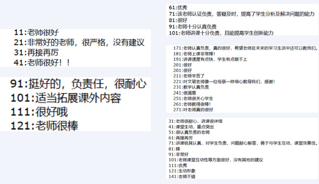 近几年教务系统中学生对叶文珺老师的部分评教