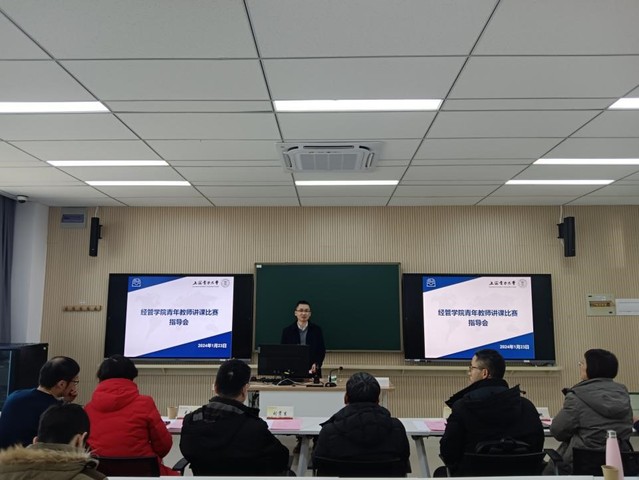 为扎实推进青年教师教学比赛选手备赛工作,提高青年教师的教学水平和教学能力,促进青年教师成长,2023年1月23日,经管学院在临港校区一教316智慧教室举办了青教赛现场模拟指导会。本次指导会邀请了yl6809永利集团督导组组长陈中华、yl6809永利集团校级督导刘贵生和上海海洋大学经济管理学院副院长陈延贵作为特邀指导专家。我校工会常务副主席毛静涛、教务处副处长徐信艳、经管学院常务副院长潘华、经管学院副院长侯建朝、经管学院副院长胡伟、经管学院工会主席容庆、上海市市赛参赛选手冷亚军及经管学院其他青年教师参加了指导会。本次指导会由胡伟主持。