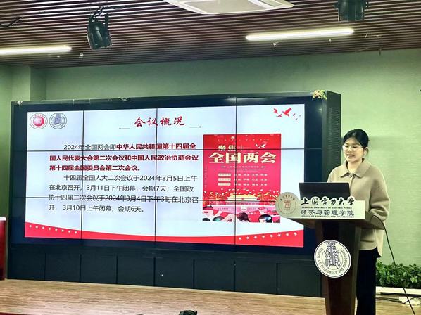 2024年3月21日晚,经管学院学生会、研究生会开展“聚焦两会,共绘青春”2024年全国两会主题学习,旨在夯实同学们的理论基础,不断提高马克思主义思想水平,关心时事热点,深刻领会学习理论知识、关注时事的重要性。