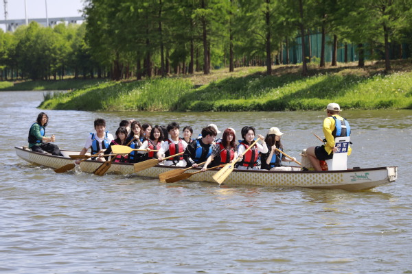 5月17日,头雁领航班第二讲前往上海海洋大学展开交流互访,本讲旨在搭建两校互动交流平台,提供深入交流、团结协作、扩充知识面的机会,凝聚两校学生共同协作、积极奋进的思想,提高学生骨干的综合素养。同学们在龙舟训练场地进行握桨、划桨训练,齐心协力,划船游行,突显团队合作与集体力的重要性,提高个人坚韧的意志力与耐力。在上海海洋大学校史馆参观中,了解到了多样性海洋生物化石标本同事更全面了解上海海洋大学特有的校园文化氛围。