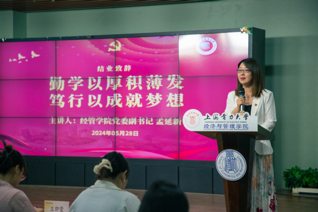 在结业仪式中,学院为评选出的“优秀小组”、“优秀学员”、“优秀党建指导员”颁发了荣誉证书。最后,学院党委副书记孟延新以“勤学以厚积薄发,笃行以成就梦想”为主题作结业致辞,其强调党校培训班的学习虽然告一段落,但党校学习并不应该是个终点,而应成为同学们更上一层的新起点。她希望学员们务必不忘初心,牢记使命,坚持提升自身修养,强化自身建设,认真学习党的理论知识,在实践中积极向党组织靠拢,争取早日加入党组织。
