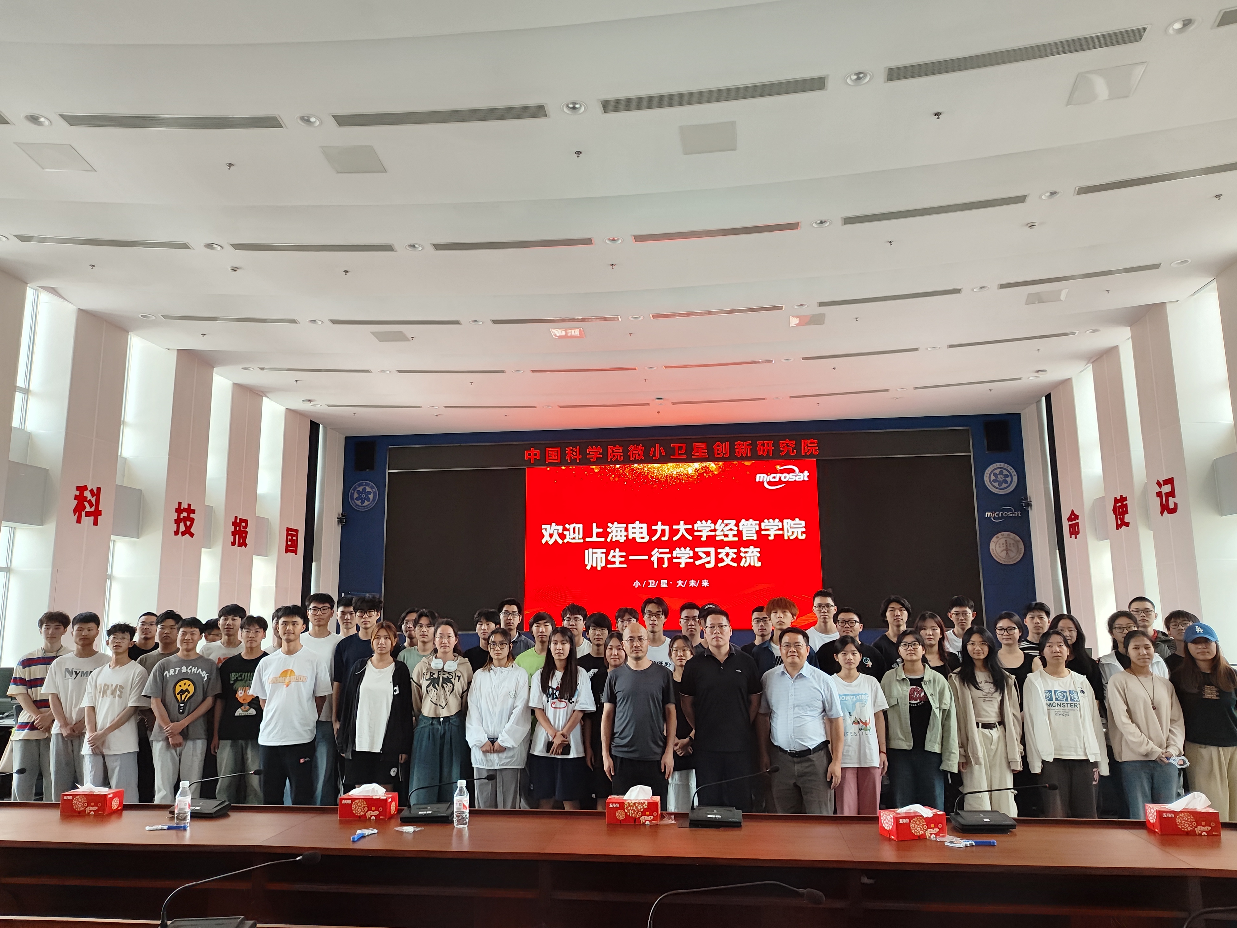 为深入学习航天精神,了解前沿科技发展,进一步促进学生就业意识和就业能力提升,6月13日,2023级信息管理与信息系统专业全体学生在王鑫印、冷亚军老师的带领下,前往中国科学院微小卫星创新研究院临港园区参观学习。