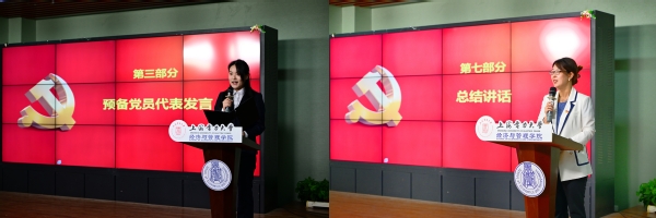 宣誓完毕后,管理科学与工程系学生党支部预备党员金义义作为代表传达了全体新发展党员的心声,她表示,将以身边的优秀党员为榜样,充分发挥先锋模范作用,努力成为一名“忠诚、担当、专业、务实、守正”的新时代青年党员。