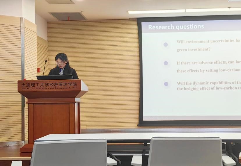 我院硕士研究生魏颖、王烜在潘仙友老师的指导下参加了此次会议,并在平行会议上做了题为《Corporate Green Investment under Environmental Uncertainty Constraints in China: the Hedging Effect of Low-carbon Targets》的主旨报告。该研究深入探讨了低碳目标如何在不确定环境性约束下促进企业绿色投资,并揭示了低碳政策对企业绿色投资决策的影响机制。该研究指出,环境不确定性对企业绿色投资具有不利影响,低碳目标的设定可以防止这种不利影响并促进企业绿色投资。当应用于国有企业和成熟企业时,低碳目标对两者具有调节作用,且由于企业动态能力不同,低碳目标具有异质性的调节作用。