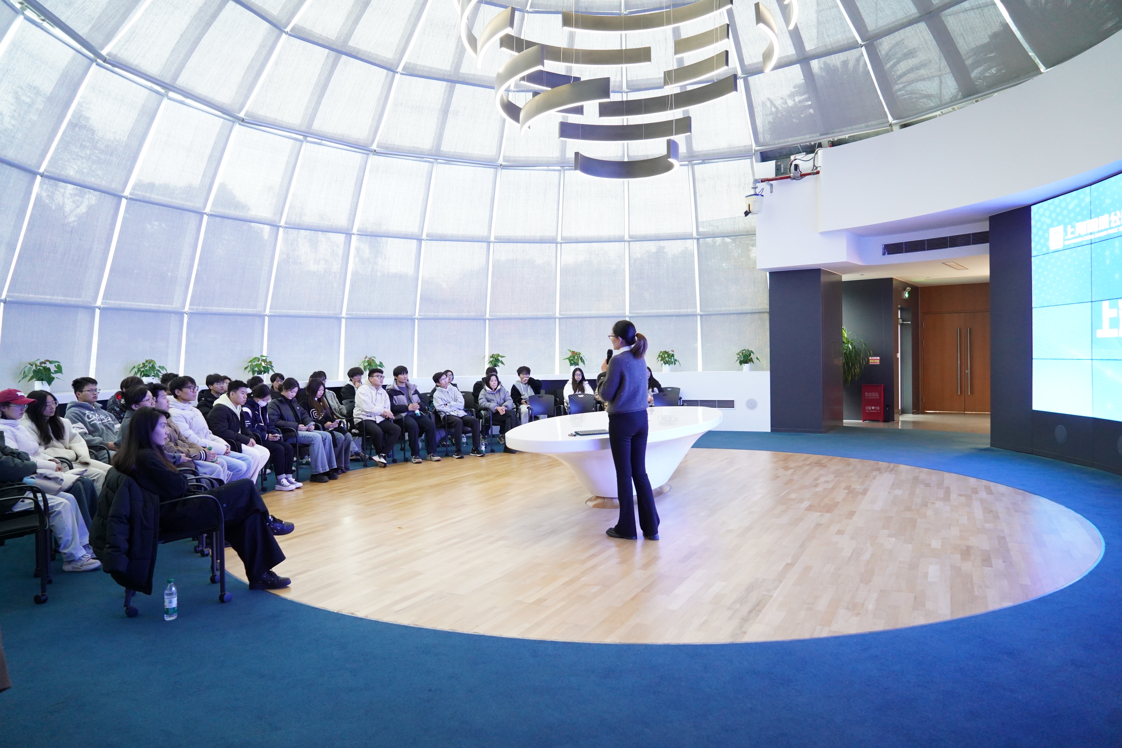 在上海跨境公服打造的上海跨境电商数智展示监测中心,师生们首先被科技感十足的展示环境所吸引。这里通过先进的数据可视化技术和智能设备,全面展示了跨境电商行业的发展历程、市场趋势以及上海在跨境电商领域的领先地位。通过工作人员的详细讲解,师生们对跨境电商的运营模式、业务流程、政策法规等方面有了更为深入的了解。在参观过程中,上海跨境公服市场部负责人王芳玺,向师生们介绍了公司在跨境电商人才培养方面的努力和成果,随着跨境电商行业的快速发展,行业对高素质人才的需求日益增长。为此,上海跨境公服积极与高校合作,通过校企合作、实习实训等方式,为行业输送了大量具备专业知识和实践能力的优秀人才。