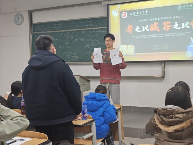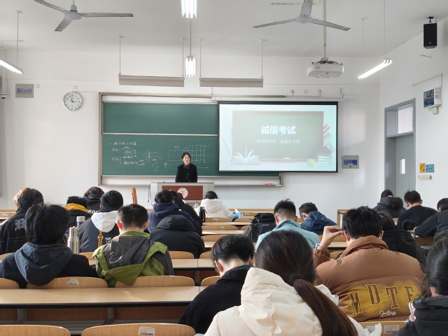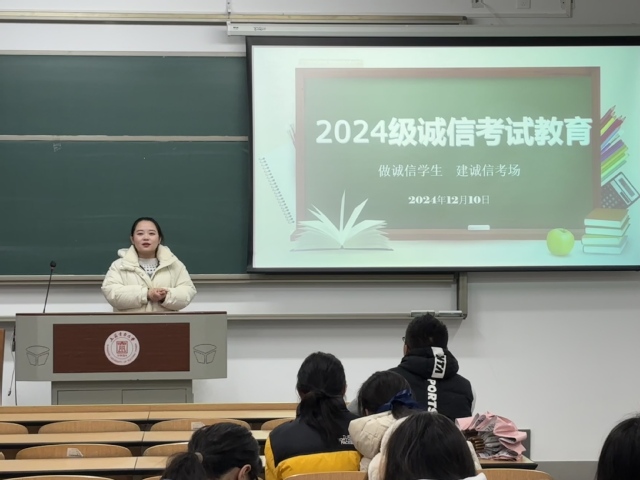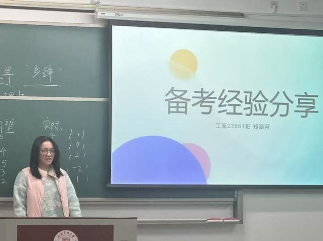 展晴晴在诚信班会中还特别邀请了专业成绩优异的同学来分享复习备考经验。郑涵月同学从制定合理学习计划、梳理知识点的技巧等多个方面娓娓道来,为其他同学提供了实用且有效的备考思路。通过学霸分享,不仅强化了学生们诚信考试的观念,也助力他们更科学地准备即将到来的考试。