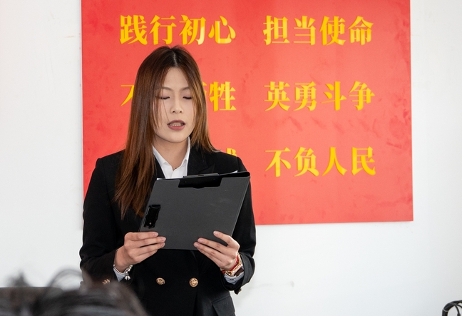 接着,许佳苗作为代表发言,她郑重承诺,要始终牢记入党誓词,坚定共产主义信仰不动摇,处处以党员标准严格要求自己,刻苦学习、勤奋工作,坚定信念跟党走。