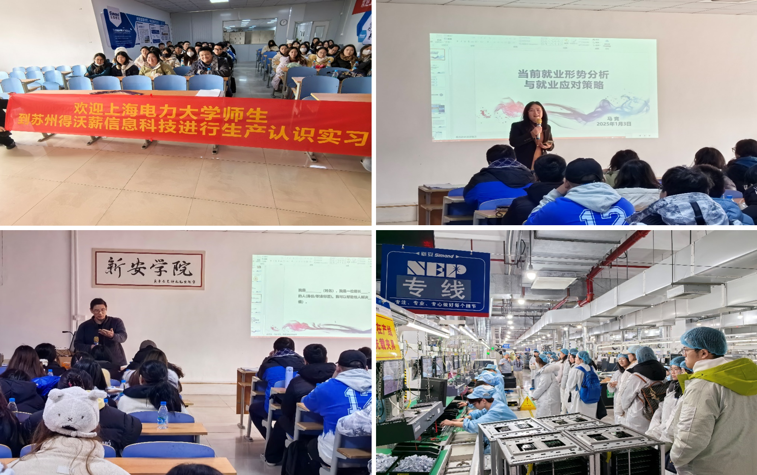下午参观了苏州新安电器股份有限公司,该企业是国内最大电子智能控制器研发与生产企业,产品涉及新能源、智能家居、变频驱动、工业控制、汽车电子、网络通讯等多个领域。公司董秘秦总介绍了企业的发展历程、主要产品、生产运营与质量管理,带领学生参观了生产制造车间,现场有针对性地回答了学生关于企业生产运营管理的问题,同时为学生提出具有针对性的择业指导建议。经过充分沟通,学生对于自己接下来的发展规划有了更加直观的认识与理解,有利于学生进一步找准自己发展定位,持续提升自己后续就业认知与职场综合竞争力。