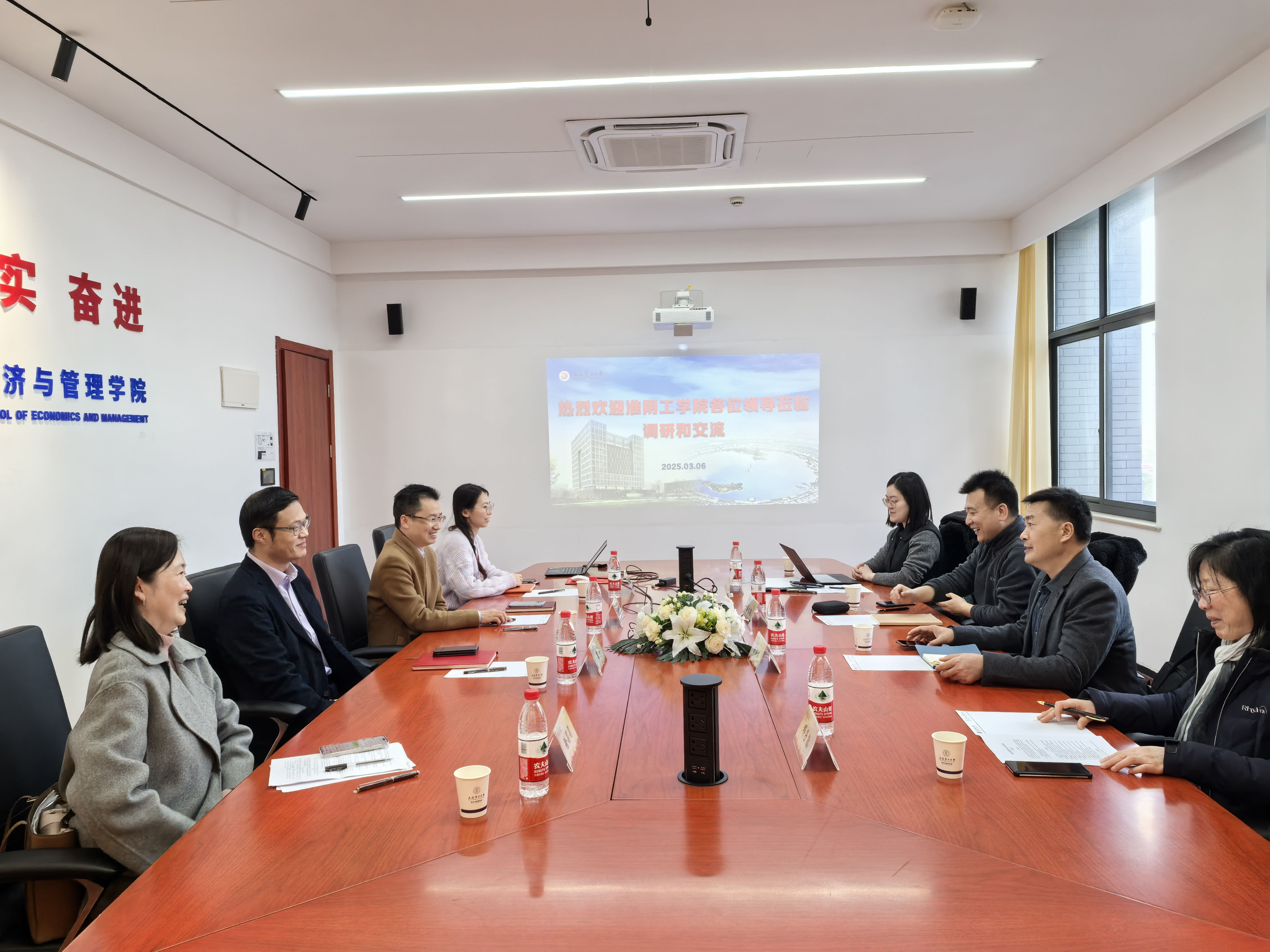3月6日,淮阴工学院商学院院长刘满成、副院长蒋志强、工商管理系主任邓子鹃、工商管理专业骨干教师徐钊来学院开展专题调研,聚焦新文科教育专业认证体系构建与产教融合机制创新。学院党委副书记、常务副院长潘华、副院长胡伟、工商管理系主任徐莉莉及办公室副主任唐景备出席会议,双方围绕新文科建设的理论逻辑、实践路径及认证标准展开深度学术对话。